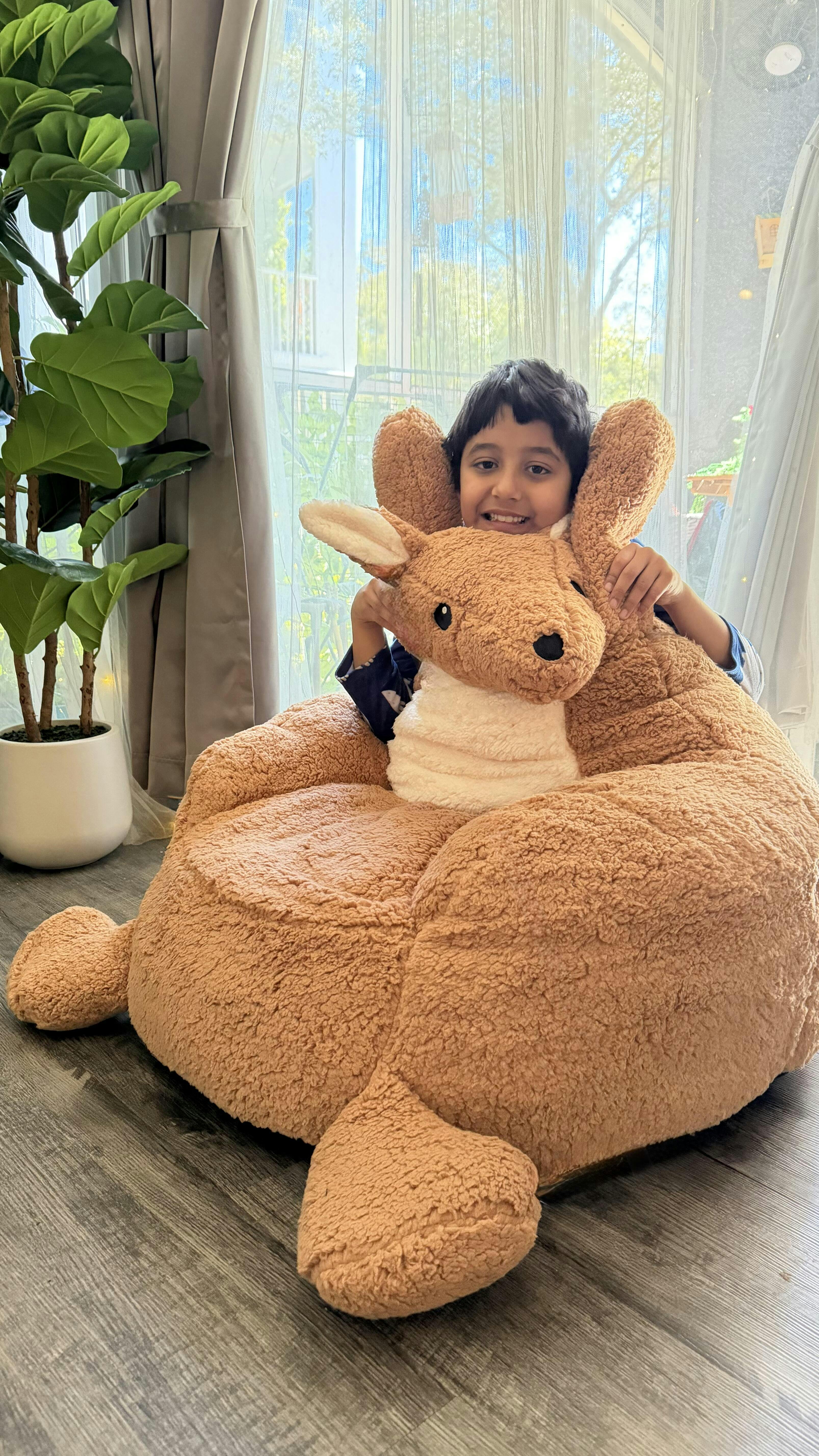 The Eggzu Kangaroo Bean Bag Chair wraps your little one in a cozy embrace that mimics the warmth and security of a mother kangaroo's pouch. Perfect for quiet time, imaginative play, or snuggling up with a favorite book.